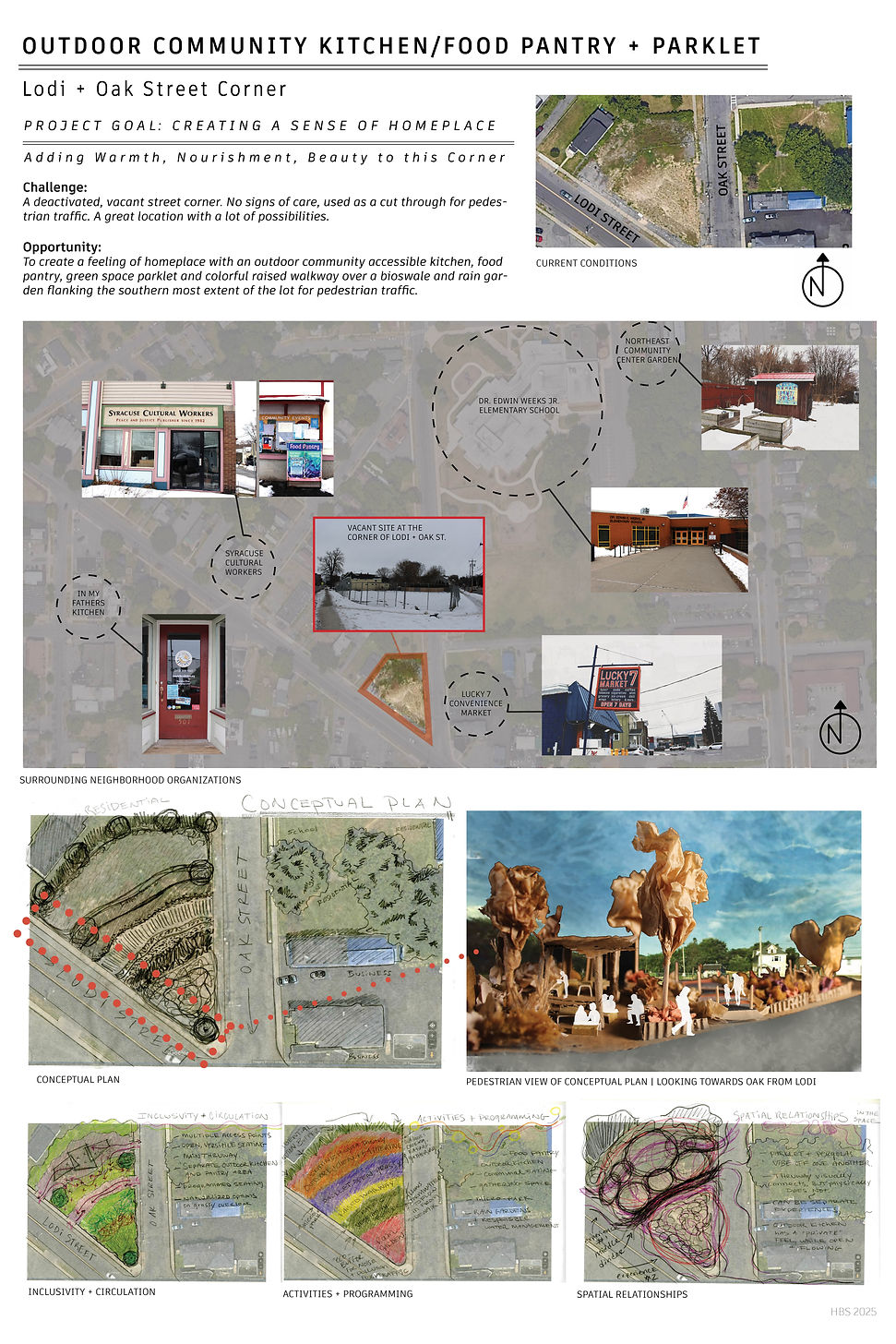 This studio module was a warm up to the bigger and more in depth urban planning and reparations work we would do later in the semester within the historic 15th ward of Syracuse, NY. This was a brief exercise to get us thinking about community needs, design, surrounding context, programming, and creating a space that felt like a homeplace.